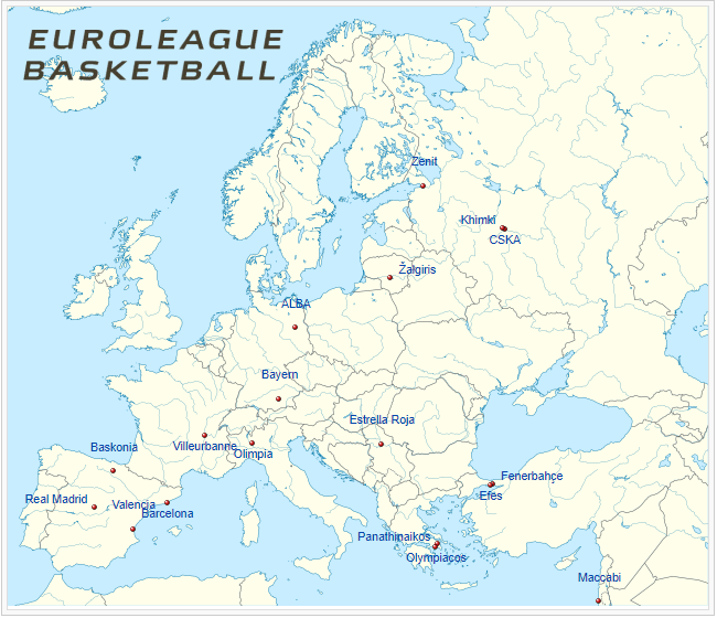 La mayoría de los equipos están en la mitad de la Europa meridional: tres equipos están en la península ibérica, uno en la península itálica, siete en la península balcánica, uno en las costas orientales del mar Levanto, uno en la zona central y tres en la oriental.